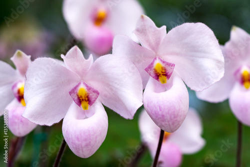 Obraz premium Beautiful white and soft violet orchids in nature.