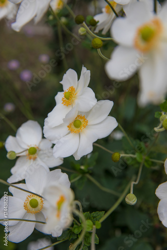 © Olga Tkacheva, Fototapeta premium Beautiful white anemones in a flowerbed