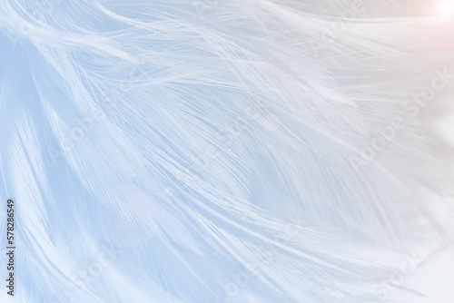 © nadtytok28, Obraz premium Beautiful white baby blue colors pastel tone feather pattern texture cool background with orange light flare