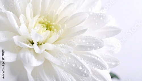 © Dian, Obraz premium beautiful white chrysanthemum with dewdrops sticking to the flower on a white background. natural texture with sharp and rough edges in a minimalist layout, minimal background