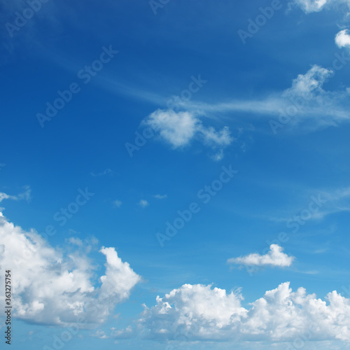 © Serghei V, Naklejka premium Beautiful white clouds against blue sky.