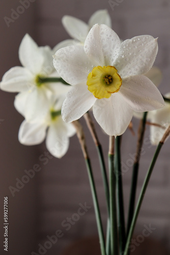 Obraz premium Beautiful white daffodils on the table