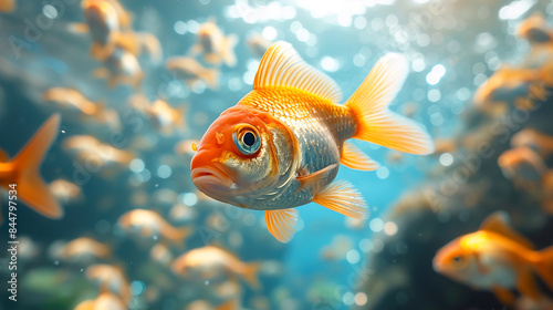 © A-Himu, Fototapeta premium Beautiful white Fishes underwater with a white background