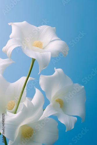 Naklejka premium beautiful white flowers on blue background in sunlight