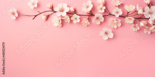 © Anna, Obraz premium Beautiful white flowers on pink background. Banner with place for text.