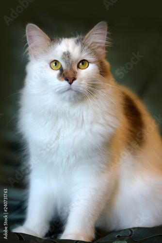 Fototapeta premium beautiful white fluffy cat with brown