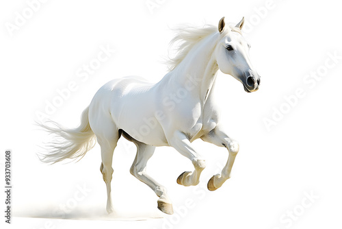 Fototapeta premium Beautiful white horse galloping isolated on white background