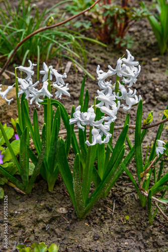 Obraz premium beautiful white hyacinth in garden.spring flower, close-up