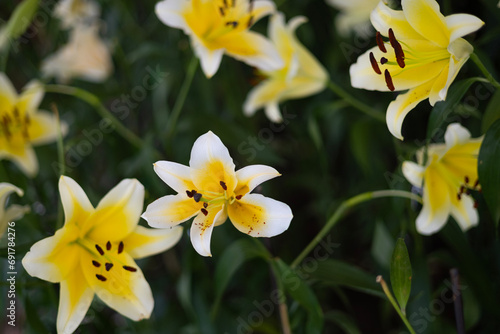 © urzine, Fototapeta premium Beautiful white lily in the garden. White lily (Lilium candidum) lit by the sun.