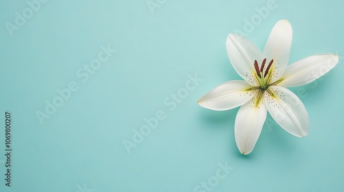 © Matcha_09, Obraz premium Beautiful White Lily on Light Blue Background