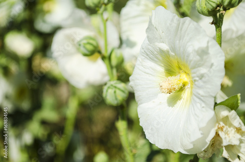 Obraz premium Beautiful white mallow flowers in the garden