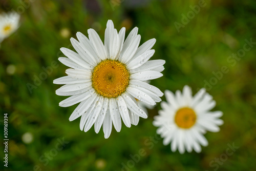 © Kristian, Obraz premium Beautiful white marguerite daisy flower with a green background