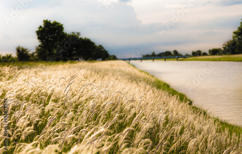 © naraichal, Obraz premium Beautiful White meadow along canal , natural outdoor secene