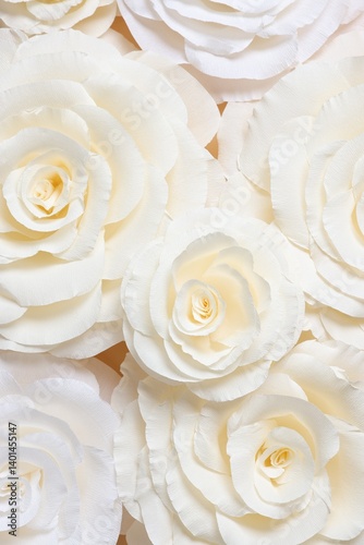 © New Africa, Obraz premium Beautiful white paper flowers as background, top view