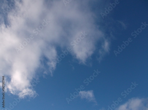 © Jabez, Fototapeta premium Beautiful white puffy clouds in a deep blue sky.