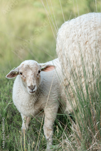 Obraz premium Beautiful white sheep farm grass natural soft pastel