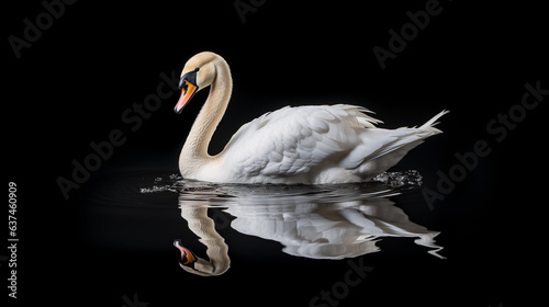 © ArturSniezhyn, Fototapeta premium Beautiful white swan on a dark background, soft light.