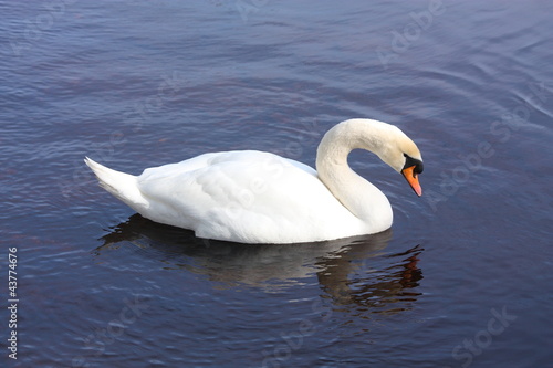 © virgonira, Naklejka premium Beautiful white swan swimming in the lake