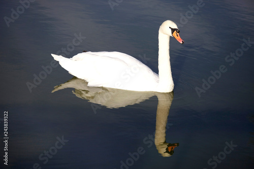 Fototapeta premium Beautiful white swan with water reflection