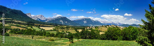 © 31etc, Naklejka premium Beautiful wide angle panoramic view, original nature, Alps