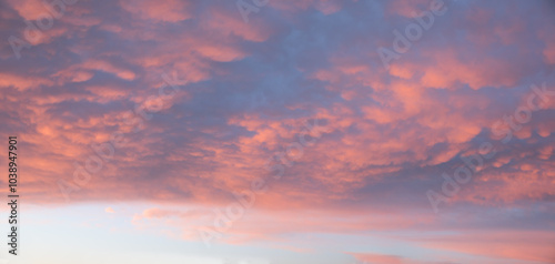 Obraz premium beautiful wide sunset sky with pink mammatus clouds