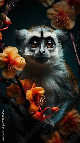 Fototapeta premium Beautiful Wild Animal Portrait in a Zoo and Flowers