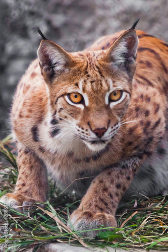 Naklejka premium Beautiful wild cat lynx. Beautiful eyes clear view, closeup portrait.