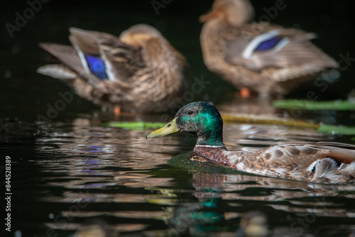 © shymar27, Fototapeta premium Beautiful wild ducks swim in a pond.
