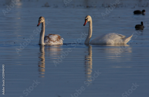© Calin Tatu, Fototapeta premium Beautiful wild swan Cygnus in warm sunset light