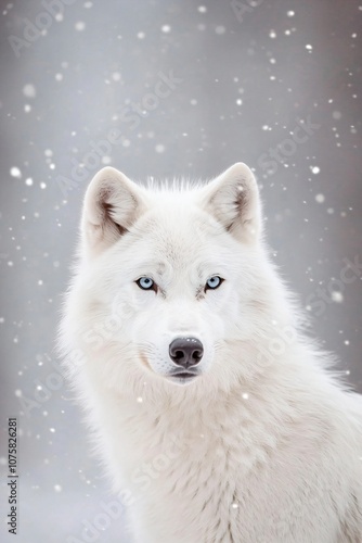 © Margarita Ratatosk, Obraz premium Beautiful wild white arctic wolf in cold snowy winter forest. Wolf pack in hunt. Wild hunter, dangerous animal in nature habitat. Wildlife scene