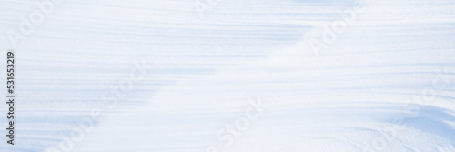 © Andrei Stepanov, Obraz premium Beautiful winter background with snowy ground. Natural snow texture. Wind sculpted patterns on snow surface. Wide panoramic texture for background and design.