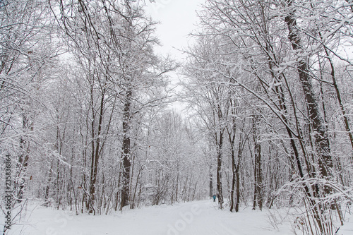 Naklejka premium Beautiful winter forest landscape, trees covered snow