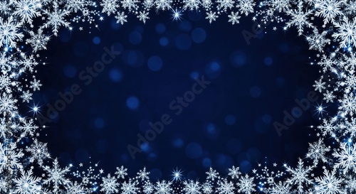Fototapeta premium Beautiful Winter Holiday Background with Sparkling Snowflakes and Blue Bokeh Lights Forming a Festive Frame