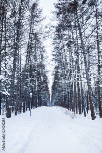 Fototapeta premium Beautiful winter in pine forest. Winter lanscape.