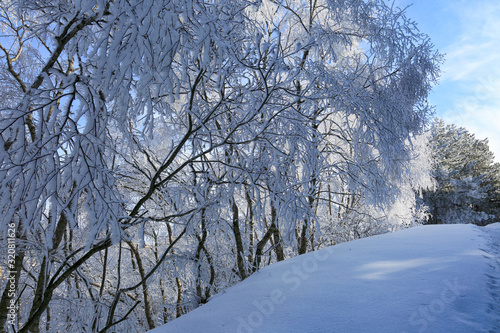 Fototapeta premium Beautiful winter landscape. Snowy forest