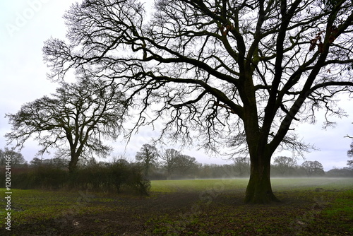 © John, Fototapeta premium beautiful winter landscape with low lying mist and perfect looking bare tree