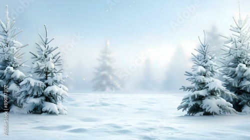© Ava, Fototapeta premium Beautiful winter landscape with snow-covered trees