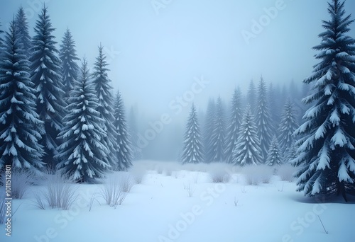 © Mahmudul, Naklejka premium Beautiful winter landscape with snow covered trees in fog