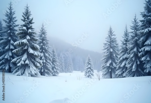 © Mahmudul, Fototapeta premium Beautiful winter landscape with snow covered trees in fog