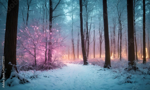 © Photinia Art, Naklejka premium Beautiful winter park with illumination