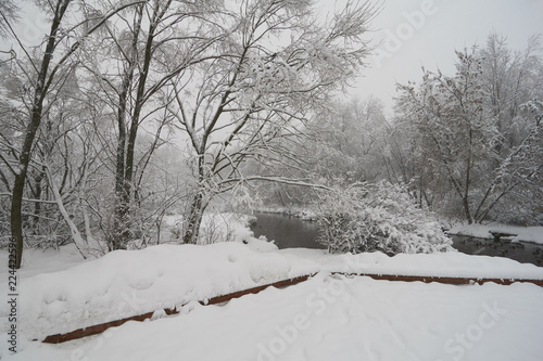 © Konstantin Gushcha, Fototapeta premium Beautiful winter scene on Yauza river