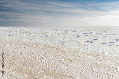 © Oleksii Astanin, Obraz premium Beautiful winter seascape. Black Sea is covered with ice.