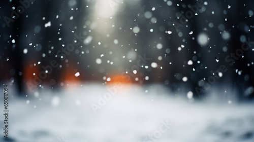 © ASHFAQ, Naklejka premium Beautiful winter snowy blurred defocused background, copy space