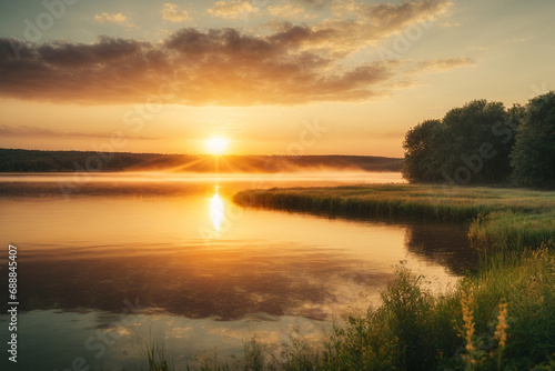 © Lazy Dog, Fototapeta premium Beautiful winter sunset with colorful sky