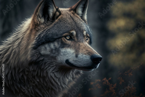 Fototapeta premium Beautiful wolf in his prime (AI Generated)