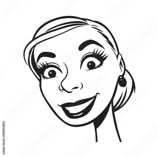 Fototapeta premium Beautiful Woman Black and White Vector Image Illustration Fashion Girl Portrait Line Art Drawing