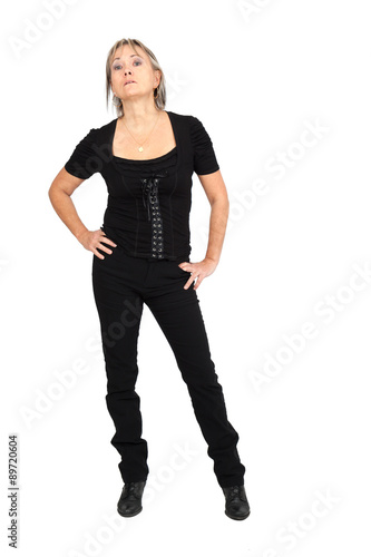 © chris_b_paris, Fototapeta premium Beautiful woman doing different expressions in different sets of clothes: full length