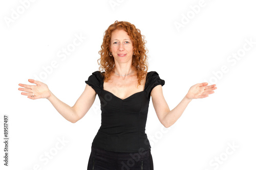 © chris_b_paris, Fototapeta premium Beautiful woman doing different expressions in different sets of clothes: welcome