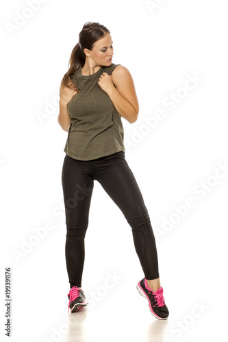 © vladimirfloyd, Fototapeta premium beautiful woman exercising on a white background