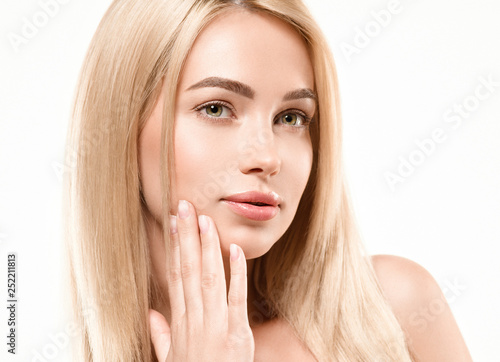 Fototapeta premium Beautiful woman female skin care healthy hair and skin close up face beauty portrait